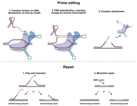 - Chen, P.J.; Liu, D.R. Prime editing for precise and highly versatile genome manipulation. Nat. Rev. Genet. 2022, 24, 161–177. [Google Scholar] [CrossRef]