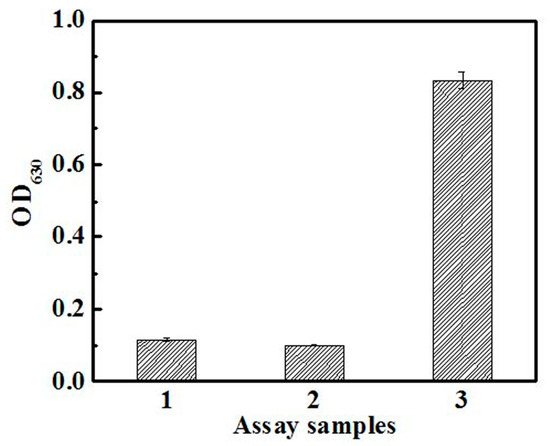 Dong et al. (2015) utilized a method for CDA activity determination based on the enzymatic conversion of cytidine to uridine and ammonia, followed by colorimetric quantification of the released ammonia using the indophenol method (Figure 6). The enzymatic reaction for ammonia production was carried out for 20 min at 37 °C, followed by 30 min at 37 °C for color development, after which absorbance was measured at 630 nm. The sensitivity of the method, assessed by the dependence of signal on cytidine concentration, varied depending on the medium used: the linear detection range in water was 0.05–10 mM, in M9 (M9 minimal salts) medium 0.058–10 mM, while in complex LB (the Lysogeny Broth) medium, the range was 2.5–10 mM. When using 10× diluted LB medium, the linear range was 0.102–10 mM [49].