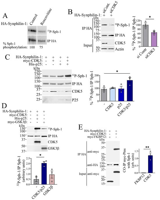 Figure 2C,D). Moreover, to compare the ability of CDK5 and GSK3β to phosphorylate synphilin-1, cells were transfected with synphilin-1 along with either CDK5 and p25 or GSK3β. [