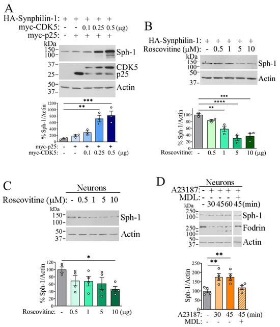 Figure 4C). To further support these findings, we utilized the calcium ionophore A23187, which activates CDK5 by inducing calpain-dependent cleavage of p35 into p25 [