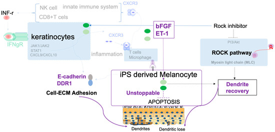 iPS; melanocyte; keratinocyte; co-culture; ROCK inhibitor; IFN-γ; Vitiligo; bFGF; ET-1; dendrites 1. Introduction