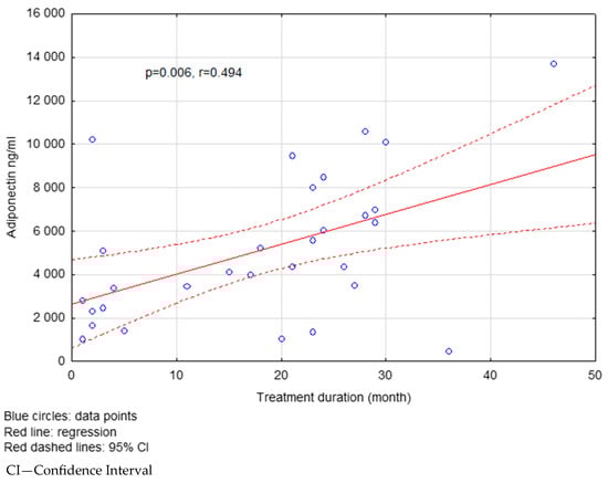 - Ramakrishnan, N.; Auger, K.; Rahimi, N.; Jialal, I. Biochemistry, Adiponectin. In StatPearls; StatPearls Publishing: Petersburg, FL, USA, 2025. [Google Scholar]