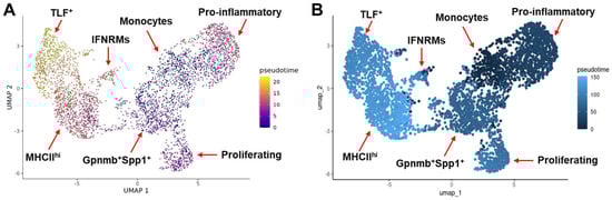 - Ke, D.; Cao, M.; Ni, J.; Yuan, Y.; Deng, J.; Chen, S.; Dai, X.; Zhou, H. Macrophage and fibroblast trajectory inference and crosstalk analysis during myocardial infarction using integrated single-cell transcriptomic datasets. J. Transl. Med. 2024, 22, 560. [Google Scholar] [CrossRef]