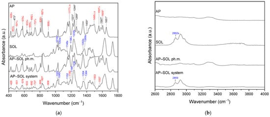 | AP | Sol [cm−1] | AP–Sol System [cm−1] | Band Assignment |
