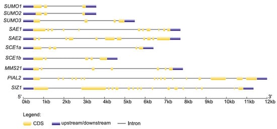 - van den Burg, H.A.; Kini, R.K.; Schuurink, R.C.; Takken, F.L.W. Arabidopsis Small Ubiquitin-Like Modifier Paralogs Have Distinct Functions in Development and Defense. Plant Cell 2010, 22, 1998–2016. [Google Scholar] [CrossRef]