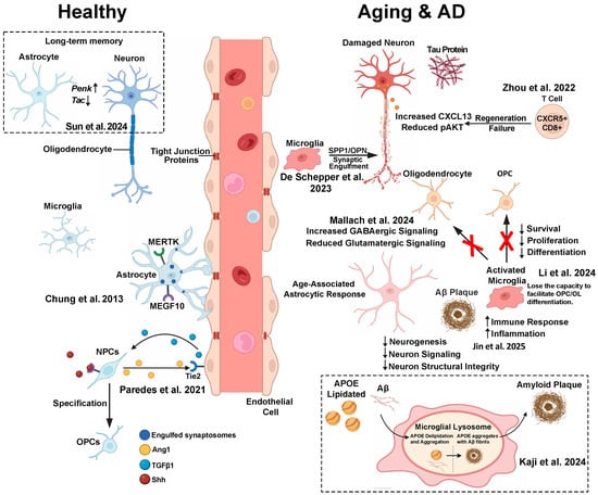 - Labarta-Bajo, L.; Allen, N.J. Astrocytes in aging. Neuron 2025, 113, 109–126. [Google Scholar] [CrossRef]