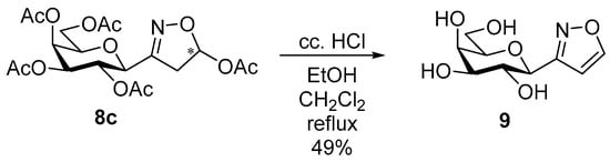 Deacylation 5-substituted 3-(2,3,4,6-tetra-O-acyl-β-d-glycopyranosyl)isoxazolines 8a,b and 3a,b.