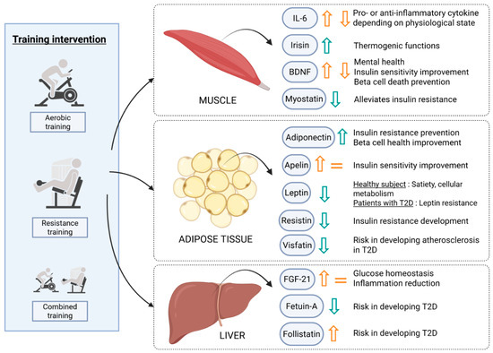 - Ennequin, G.; Sirvent, P.; Whitham, M. Role of Exercise-Induced Hepatokines in Metabolic Disorders. Am. J. Physiol. Endocrinol. Metab. 2019, 317, E11–E24. [Google Scholar] [CrossRef]