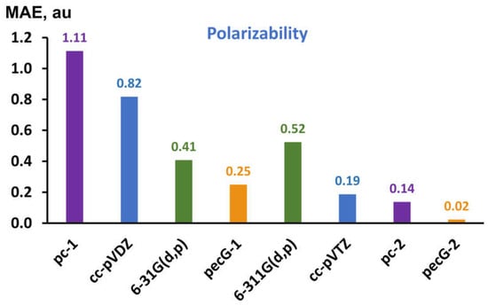 For polarizability values, we have calculated the MAEs against the theoretical reference data. The calculated MAEs are presented in Figure 4.