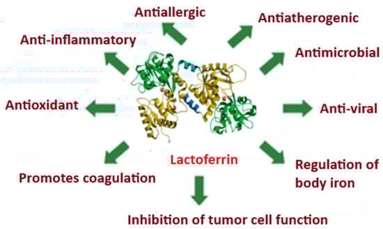 - Farnaud, S.; Evans, R.W. Lactoferrin—A multifunctional protein with antimicrobial properties. Mol. Immunol. 2003, 40, 395–405. [Google Scholar] [CrossRef]