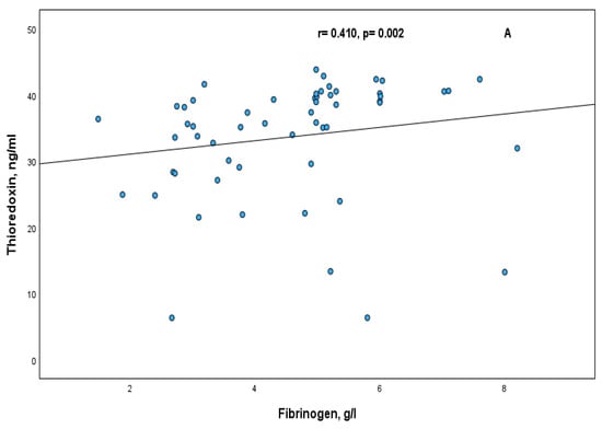 | Thioredoxin/Fibrinogen | 0.414 | 0.005 | NS | |