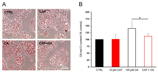 2.1. Effect of Capsaicin on Oleic Acid-Induced Hepatic Steatosis HepG2 Cell Model