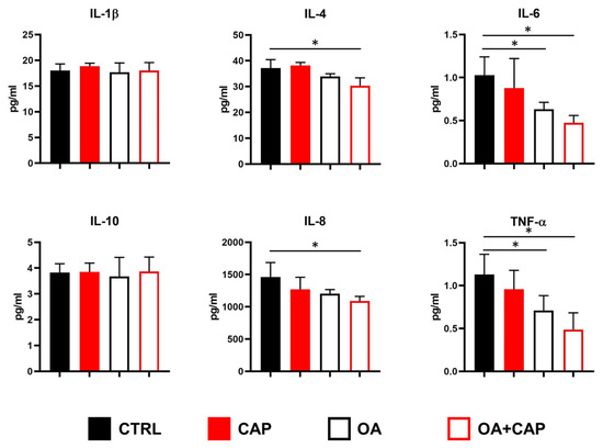 2.3. Effects of Capsaicin and Oleic Acid on Inflammatory Mediators