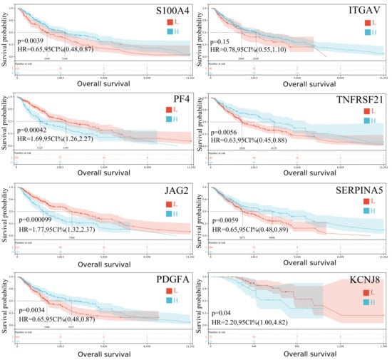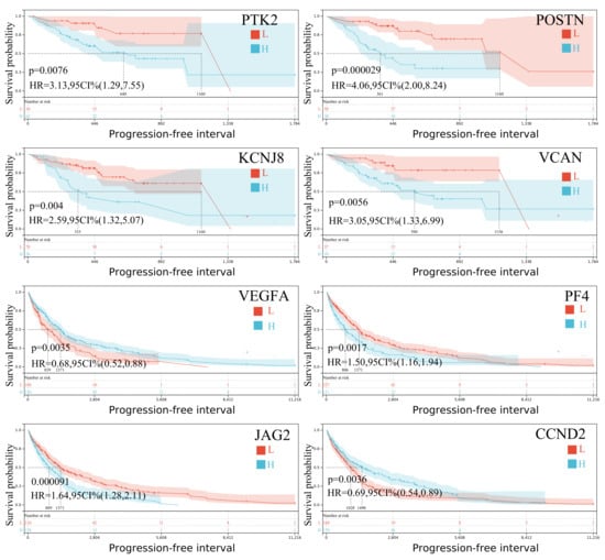 2.1. Gene Expression Prognositc Analysis of the Angiogenesis-Related Genes