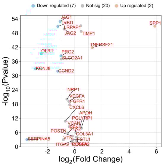 2.2. Differential Gene Expression Analysis of the Angiogenesis-Related Genes