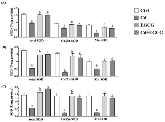 2.4. Effects of Cd, EGCG, and Cd+EGCG on Antioxidant Activity