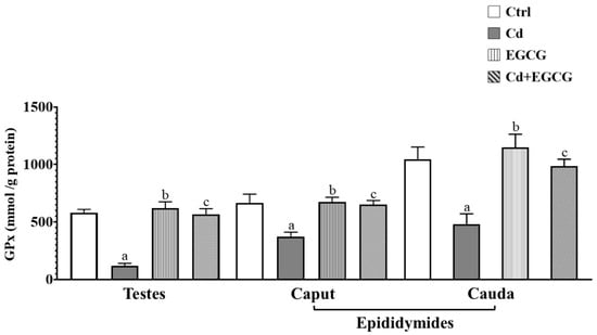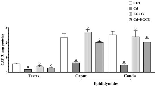 Pérez-Aguirre SG, Vigueras-Villaseñor RM, Bonilla-Jaime H, Montes S, Galván-Arzate S, Hernández-Rodríguez J, Marín de Jesús S, Carrizales-Yañez L, Rojas-Castañeda JC, Arteaga-Silva M. Epigallocatechin-3-Gallate Enhances Antioxidant Activity and Improves Testicular and Epididymal Histology in Cadmium-Exposed Prepubertal Rats. International Journal of Molecular Sciences. 2025; 26(17):8264. https://doi.org/10.3390/ijms26178264