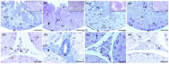 - Ji, Y.L.; Wang, H.; Liu, P.; Wang, Q.; Zhao, X.F.; Meng, X.H.; Yu, T.; Zhang, H.; Zhang, C.; Zhang, Y.; et al. Pubertal cadmium exposure impairs testicular development and spermatogenesis via disrupting testicular testosterone synthesis in adult mice. Reprod. Toxicol. 2010, 29, 176–183. [Google Scholar] [CrossRef] [PubMed]