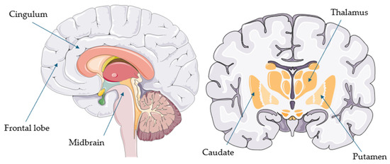 Overall, FDG-PET appears to be a useful supportive biomarker for the diagnosis of PSP and CBS. This aligns with the latest European intersocietal recommendations, which suggest that FDG-PET should be the first assessment tool once a clinical syndrome of PSP or CBS has been recognized [13]. In PSP, the most common hypometabolic regions include the midbrain (particularly the tegmentum) and extensive areas of the frontal cortex (such as the sensorimotor, premotor, orbitofrontal, prefrontal, superior, middle, inferior, and medial regions), usually bilaterally [30,32]. These are followed by the cingulate cortex (especially the anterior cingulum), caudate, putamen, and thalamus [21]. Other regions—such as the globus pallidus, parietal and insular cortices, pons, cerebellar vermis, and superior cerebellar peduncles—are less commonly involved [16,21,24,27,29].
