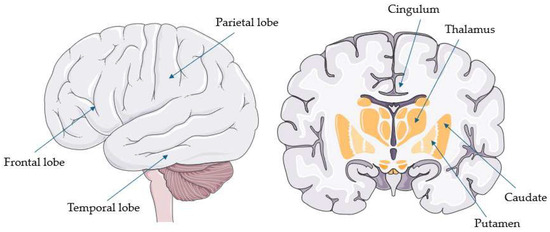 Common hypometabolic regions in corticobasal syndrome (parts of the image provided by Servier Medical Art (https://smart.servier.com/ accessed on 21 August 2025), licensed under CC BY 4.0 (https://creativecommons.org/licenses/by/4.0/ accessed on 21 August 2025).