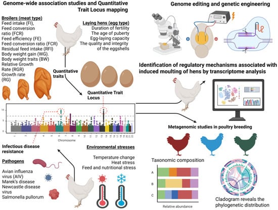 Gilyazova, I.; Korytina, G.; Kochetova, O.; Savelieva, O.; Mikhaylova, E.; Vershinina, Z.; Chumakova, A.; Markelov, V.; Abdeeva, G.; Karunas, A.; et al. Advances in Genomics and Postgenomics in Poultry Science: Current Achievements and Future Directions. Int. J. Mol. Sci. 2025, 26, 8285. https://doi.org/10.3390/ijms26178285