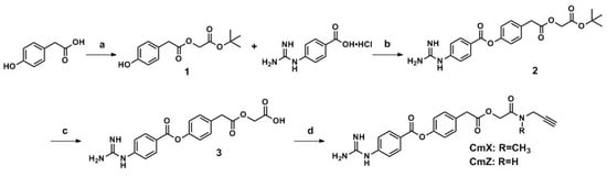 - Rostovtsev, V.V.; Green, L.G.; Fokin, V.V.; Sharpless, K.B. A Stepwise Huisgen Cycloaddition Process: Copper(I)-catalyzed Regioselective “Ligation” of Azides and Terminal Alkynes. Angew. Chem. (Int. Ed. Engl.) 2002, 41, 2596–2599. [Google Scholar] [CrossRef]