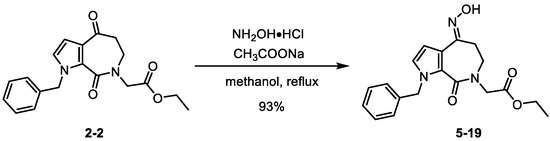 Oxime derivative 5-19 was synthesized via a condensation reaction of derivative 2-2 with hydroxylamine hydrochloride under heating and reflux conditions (Scheme 4).