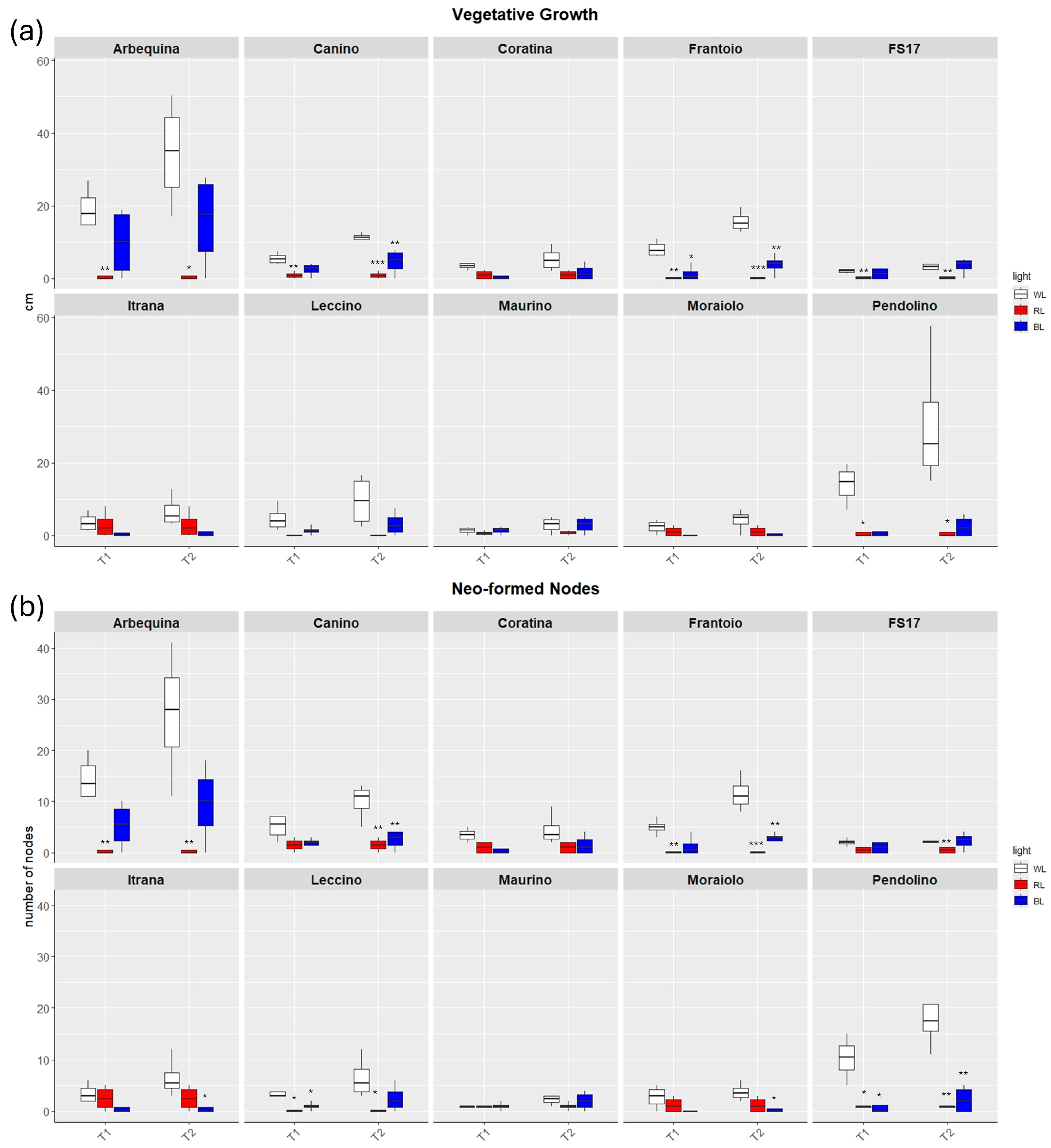 - Díaz-Rueda, P.; Cantos-Barragán, M.; Colmenero-Flores, J.M. Growth Quality and Development of Olive Plants Cultured In-Vitro under Different Illumination Regimes. Plants 2021, 10, 2214. [Google Scholar] [CrossRef]