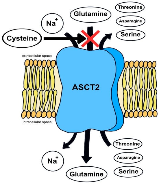 Schematic representation of the action of alanine, serine, and cysteine transporter type 2 (ASCT2). Na+—sodium cation.