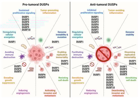 Role of DUSPs in the hallmarks of cancer. https://biorender.com/n0m03f4 (accessed 25 August 2025).
