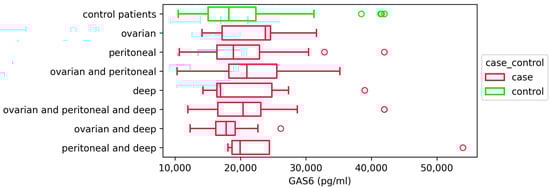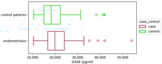We found statistically significantly higher concentrations of GAS6 in plasma samples from patients with different types of endometriosis compared to control patients (p = 0.015) (Figure 2, Table 2).