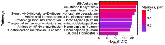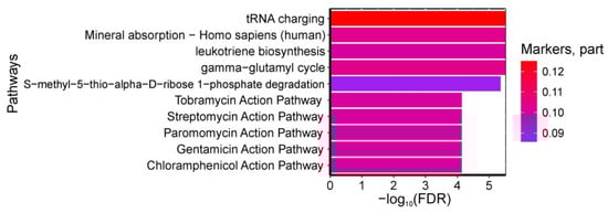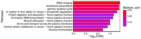 p < 0.01. The top 10 most significant pathways were selected based on maximum geometric mean values (calculated as: [number of pathway-included markers]/[total pathway metabolites] and minimal false discovery rates (−log10 (FDR).