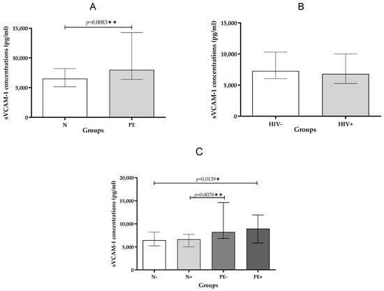 Chicago/Turabian StyleSibiya, Samukelisiwe, Mbuso H. Mthembu, Shoohana Singh, Thajasvarie Naicker, and Nompumelelo P. Mkhwanazi. 2025. "Pre-Eclampsia Comorbid with HIV Infection Mimics the Release of sVCAM-1, sICAM-1, and sE-Selectin in African Women" International Journal of Molecular Sciences 26, no. 17: 8383. https://doi.org/10.3390/ijms26178383