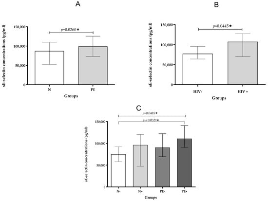 - Mistry, H.D.; Ogalde, M.V.H.; Broughton Pipkin, F.; Escher, G.; Kurlak, L.O. Maternal, Fetal, and Placental Selectins in Women With Pre-eclampsia; Association With the Renin-Angiotensin-System. Front. Med. 2020, 7, 270. [Google Scholar] [CrossRef] [PubMed] [PubMed Central]