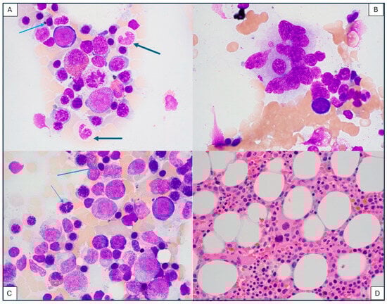 - Kanagal-Shamanna, R.; Bejar, R.; Germing, U.; Haferlach, C.; Ogawa, S.; Padron, E.; Patkar, N.V.; Xiao, W. Haematolymphoid Tumours Part A. In Myeloid Neoplasm Post Cytotoxic Therapy; Board TWCoTE, Ed.; International Agency for Research on Cancer (IARC): Lyon, France, 2024; pp. 170–172. [Google Scholar]