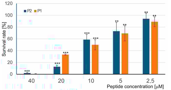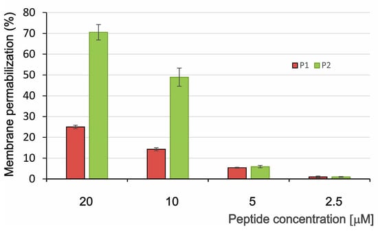 2.2.1. Permeabilization of Bacterial Membrane by P1 and P2 Peptides