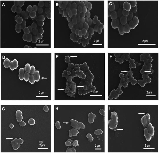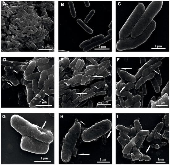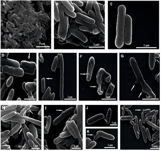 4.7. Scanning Electron Microscopy (SEM) Imaging of Bacteria