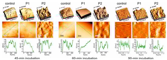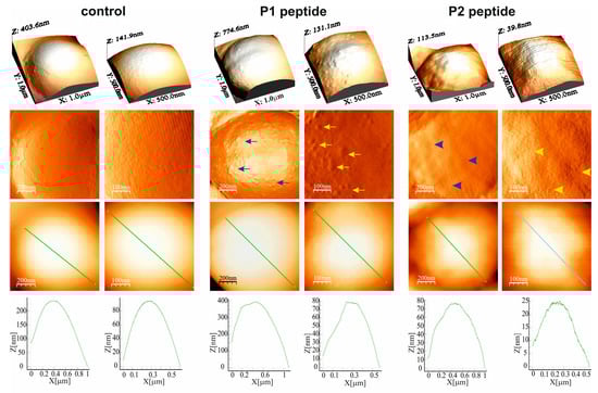 2.1.3. M. luteus Cell Surface Topography and Nanomechanical Properties After Treatment with P1 and P2 Peptides (AFM Imaging)