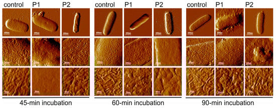 2.2.3. E. coli Cell Surface Topography and Nanomechanical Properties After Treatment with P1 and P2 Peptides (AFM Imaging)