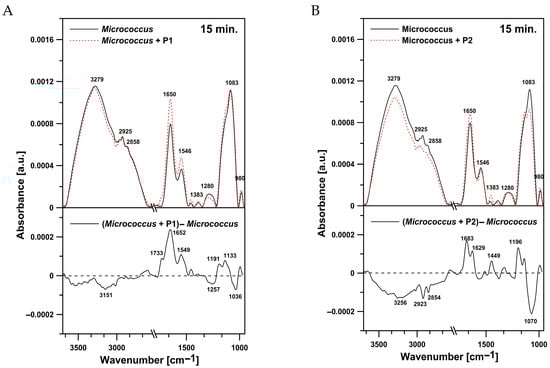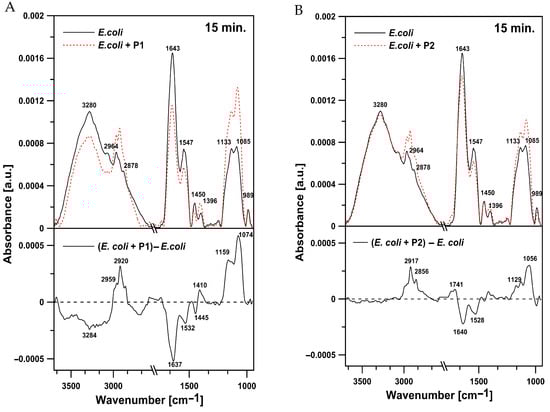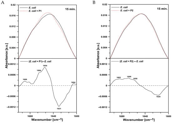 2.4. FTIR Spectroscopy Investigation of P1 and P2 Effects on M. luteus and E. coli Cells