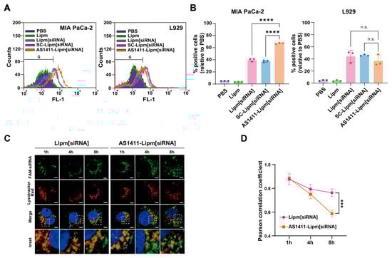 2.4. AS1411-Conjugated Liposomes Enhance Targeted siRNA Uptake and Promote Endosomal Escape in Nucleolin-Positive Pancreatic Cancer Cells