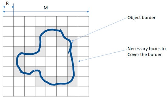 The number of windows required to cover the object, N(R), is counted for each scale, as shown in Figure 9. The FD is then calculated using the following equation: