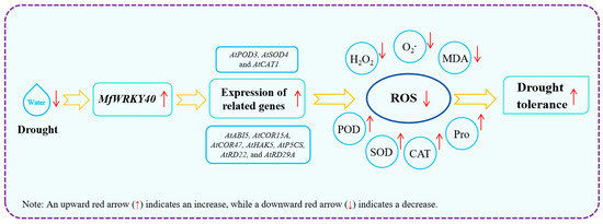 Regulatory model of MfWRKY40 gene in A. thaliana under drought stress.