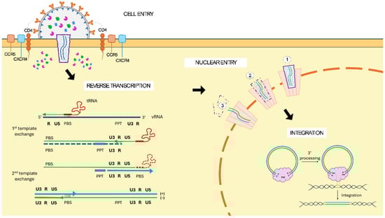- Farnet, C.M.; Haseltine, W.A. Circularization of Human Immunodeficiency Virus Type 1 DNA in Vitro. J. Virol. 1991, 65, 6942–6952. [Google Scholar] [CrossRef]