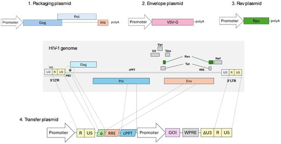 APA StyleArrasate, A., Lopez-Robles, C., Zuazo, M., Banos-Mateos, S., Martin, C., Lamsfus-Calle, A., & Fertin, M. J. (2025). Lentiviral Vectors: From Wild-Type Viruses to Efficient Multi-Functional Delivery Vectors. International Journal of Molecular Sciences, 26(17), 8497. https://doi.org/10.3390/ijms26178497