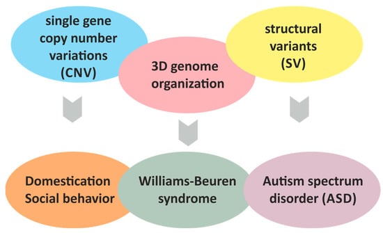 Shepelev MV, Skobel OI, Glazko TT, Popov DV, Vysotskii DE, Georgiev PG, Maksimenko OG, Kosovsky GY, Silaeva YY. WBSCR Locus: At the Crossroads of Human Behavioral Disorders and Domestication of Animals. International Journal of Molecular Sciences. 2025; 26(17):8549. https://doi.org/10.3390/ijms26178549