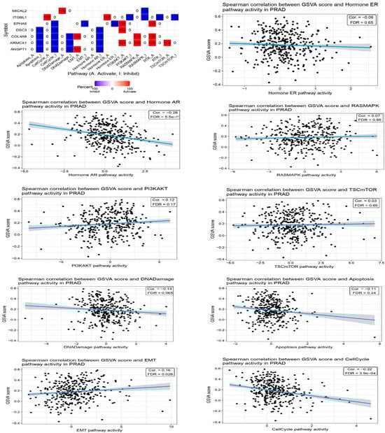 Figure 3. Identification of the signaling pathway linked to EMT in the prostate cancer microenvironment. The signaling pathways involved in the prostate cancer environment include the Hormone ER pathway, Hormone AR pathway, RAS-MAPK pathway, TSC-mTOR pathway, DNA damage pathway, and cell cycle pathway.