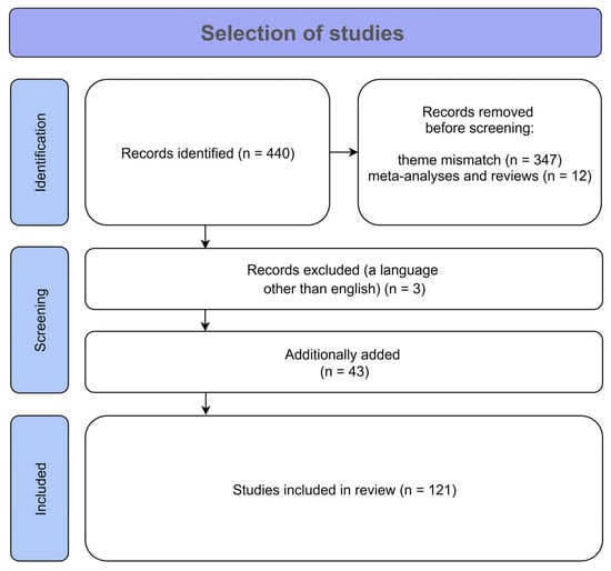 - Page, M.J.; McKenzie, J.E.; Bossuyt, P.M.; Boutron, I.; Hoffmann, T.C.; Mulrow, C.D.; Shamseer, L.; Tetzlaff, J.M.; Akl, E.A.; Brennan, S.E.; et al. The PRISMA 2020 Statement: An Updated Guideline for Reporting Systematic Reviews. BMJ 2021, 372, n71. [Google Scholar] [CrossRef]