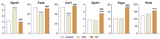 2.3.2. Opioidergic and Cannabinoidergic Genes