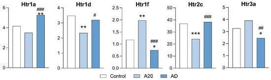 - Kudryavtseva, N.N.; Smagin, D.A.; Kovalenko, I.L.; Galyamina, A.G.; Vishnivetskaya, G.B.; Babenko, V.N.; Orlov, Y.L. Serotonergic genes in the development of anxiety/depression-like state and pathology of aggressive behavior in male mice: RNA-seq data. Mol. Biol. 2017, 51, 288–300. [Google Scholar] [CrossRef]